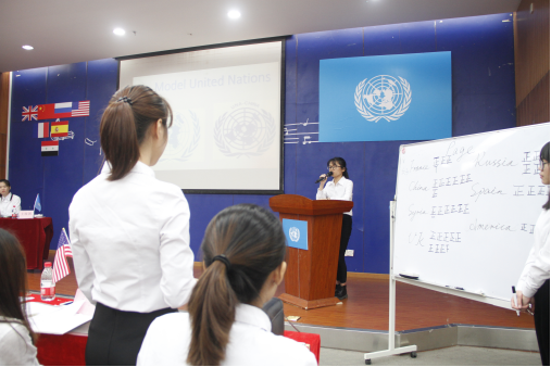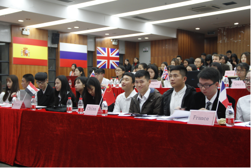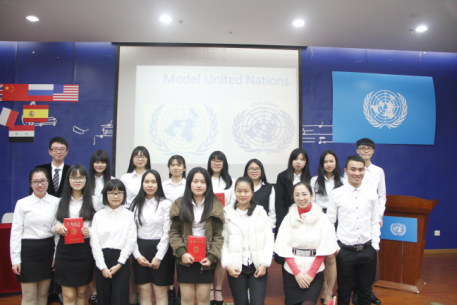 模拟联合国(Model United Nations)是一项历史悠久、风靡全球、极富教育意义的学生活动,长期受到联合国总部的重视与支持,全世界每年有近四百个国际模拟联合国大会在五大洲的50多个国家召开。我系开展模拟联合国活动,旨在提高同学们英语听说读写综合应用能力,研究和公文写作能力,公开发言和辩论的能力,解决冲突、求同存异的能力,多种学科知识的整合能力,同时模联活动能够增强同学们对于联合国组织的结构、程序和功能的认识,促进同学们以国际眼光看待问题,锻炼领袖气质与合作精神,是一场精英学生的盛会,也为我院校园文化建设增添了新的色彩。