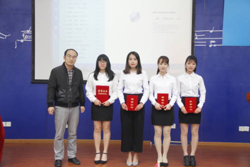 应用外语系党总支书记、副主任金海兵老师给个人奖获得者颁发荣誉证书