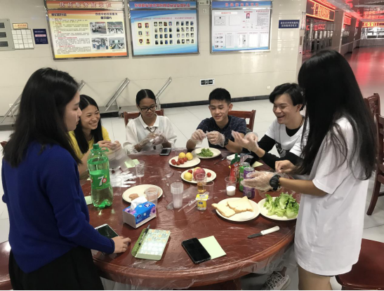 活动过程中,同学们积极地用英文交流和记录,口语表达的积极性被大大的提高。本次活动不仅让我们可以在制作食物的过程中体现团队精神,而且锻炼了大家的英语表达能力,提升了大家的自信心,让大家在轻松欢乐的气氛中畅快的用英语交流。最后,我们全体进行留影合照。