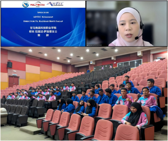 马来西亚甘马挽高科技职业学院拉兹达·萨加普校长代表外方院校致辞,她指出,东莞职业技术学院在专业建设、国际合作和产教融合等方面展现了中国职业教育的先进水平。她希望以此次培训为契机,进一步深化中马职业教育合作,推动中国先进制造经验与马来西亚产业实际深度融合,共同培养面向未来产业发展的高素质技术技能人才,为区域经济社会高质量发展贡献职教力量。